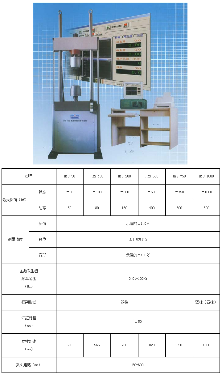HYS系列電液伺服動(dòng)靜試驗(yàn)機(jī)。適用于各種金屬材料、非金屬材料、復(fù)合材料、各零部件的力學(xué)性能試驗(yàn)。配以各種夾具及高低溫裝置、能完成拉伸、壓縮、低周和高周疲勞、裂紋擴(kuò)展、斷裂力學(xué)以及其他各種力學(xué)試驗(yàn)。